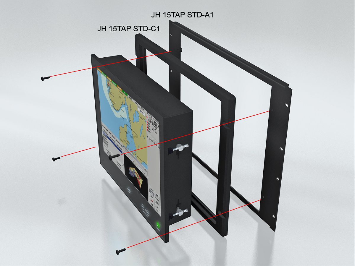 For 15 inch Series X to fit 15 inch Series 1 Cutout. Includes 4 x M6X25 pan screws (Series 1 type). Can also be combined with JH 15TAP STD-A1 to allow 15 inch Series X to fit 19 Rack Compatible, mounting holes 6U. Entire height of frame covers 10U.