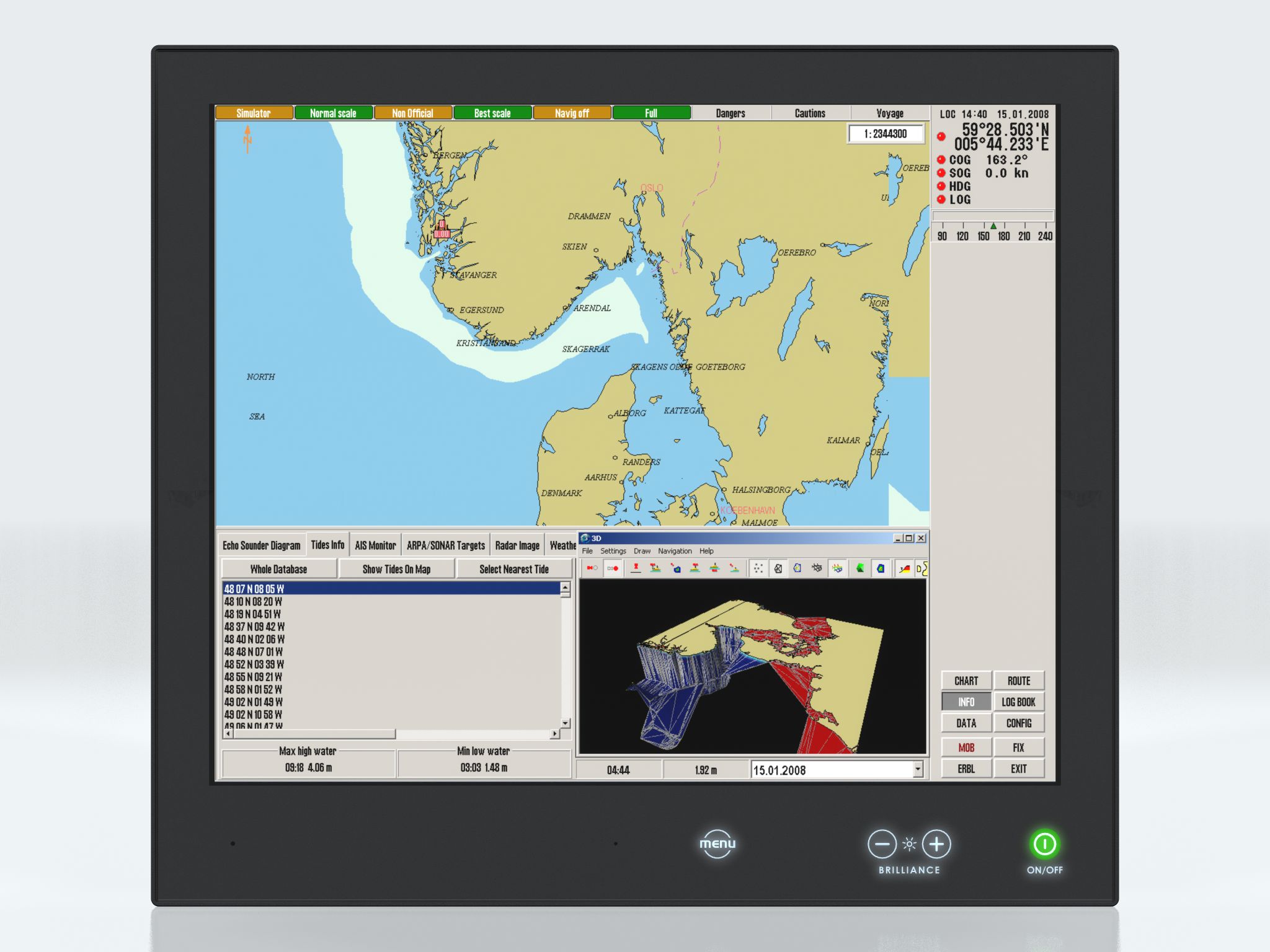 Series X Monitors feature Glass Display Control™, LED Backlight Technology, full dimming and multipower as standard, and can also accomodate and combine options such as multi-touch screen and ECDIS calibration. By factory standards the 19 inch unit is ECDIS Compliant.
