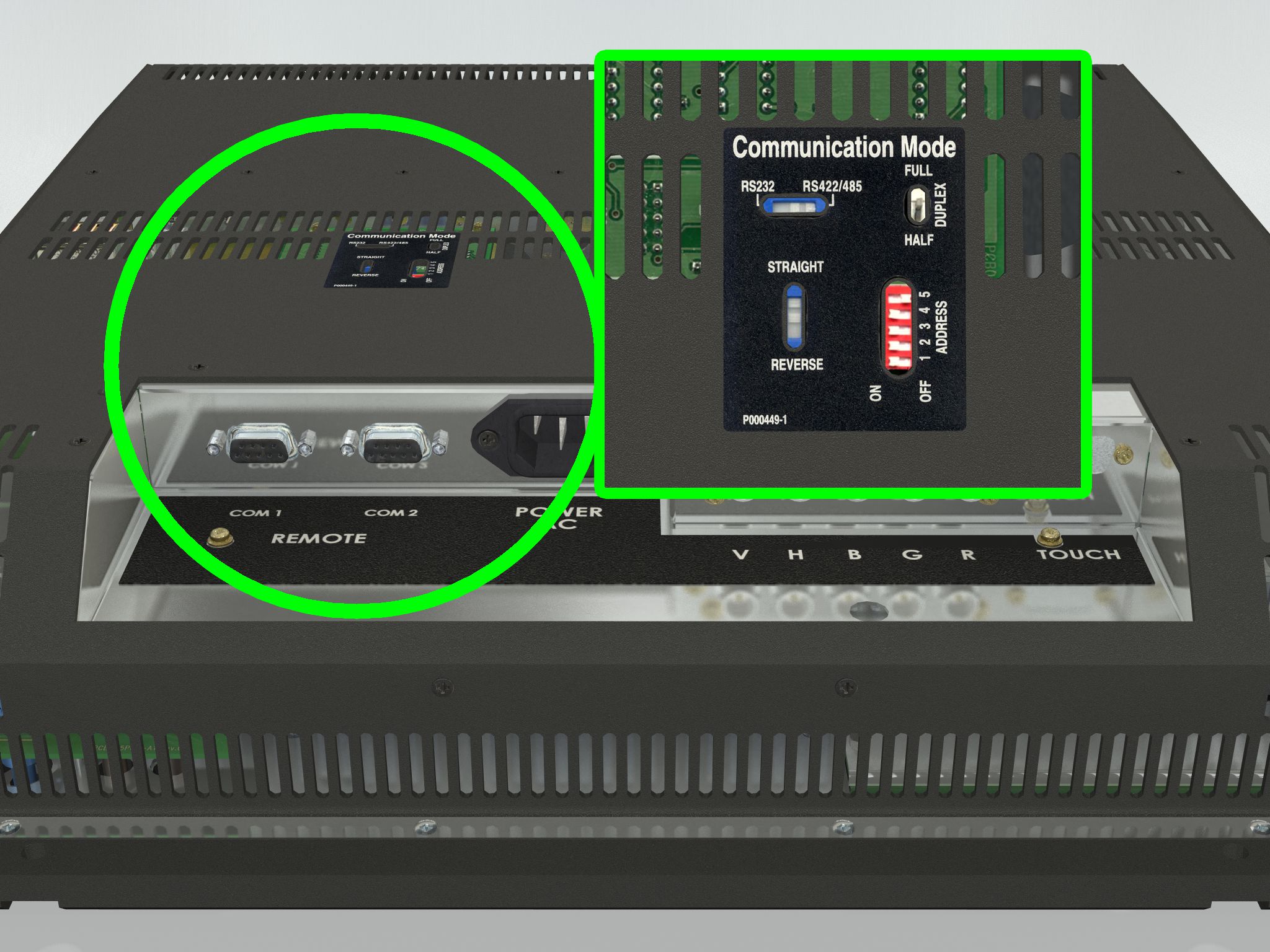 The controller and the high light intensity in combination with the high contrast and wide backlight adjustment control, allow the product to be used in many environments. The brightness is adjustable from 0 to 100%| Typenumber (Long): |