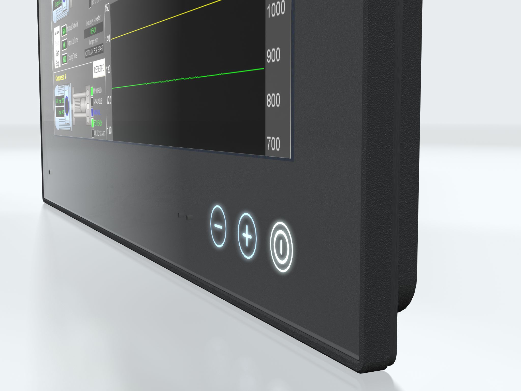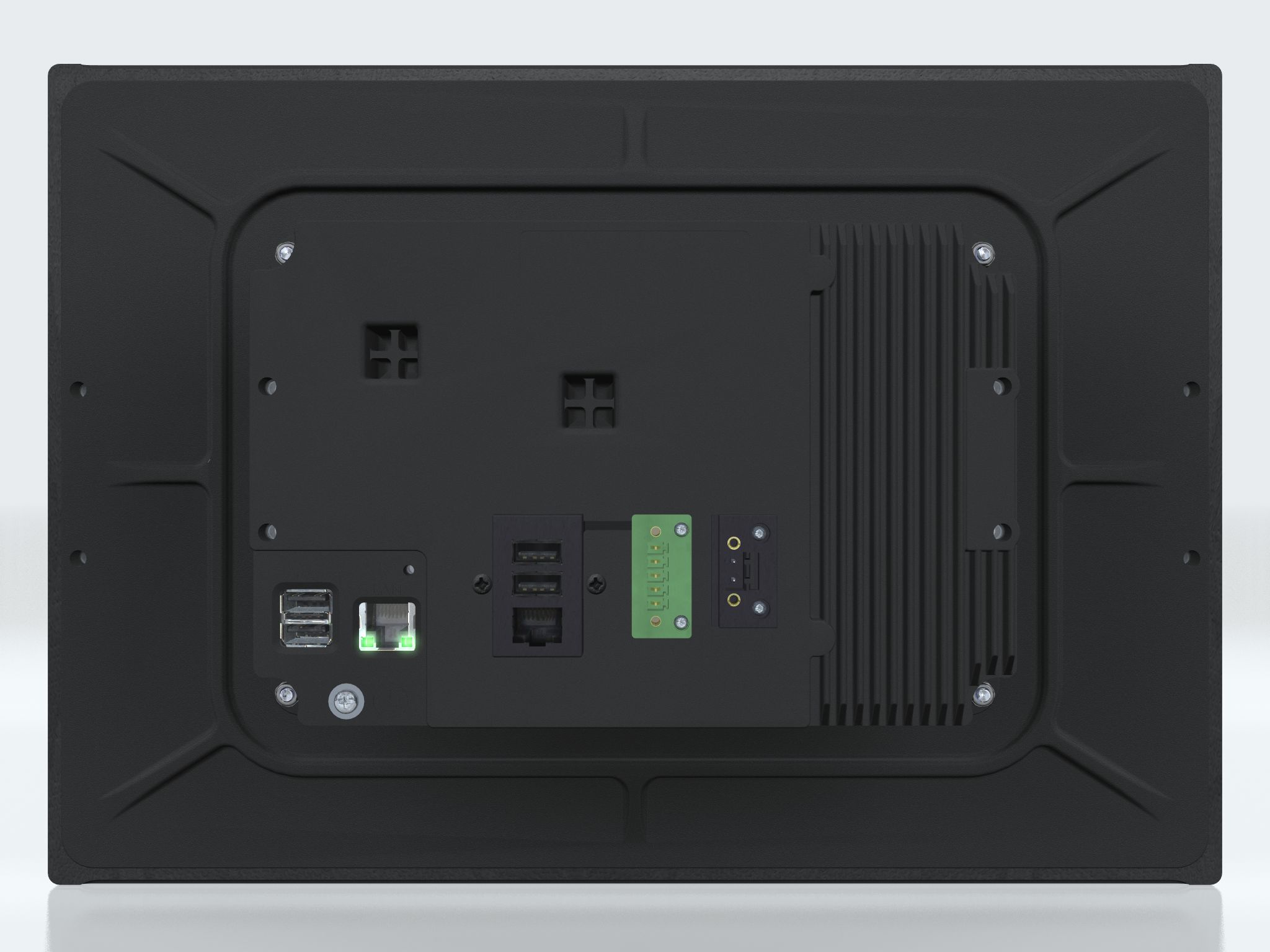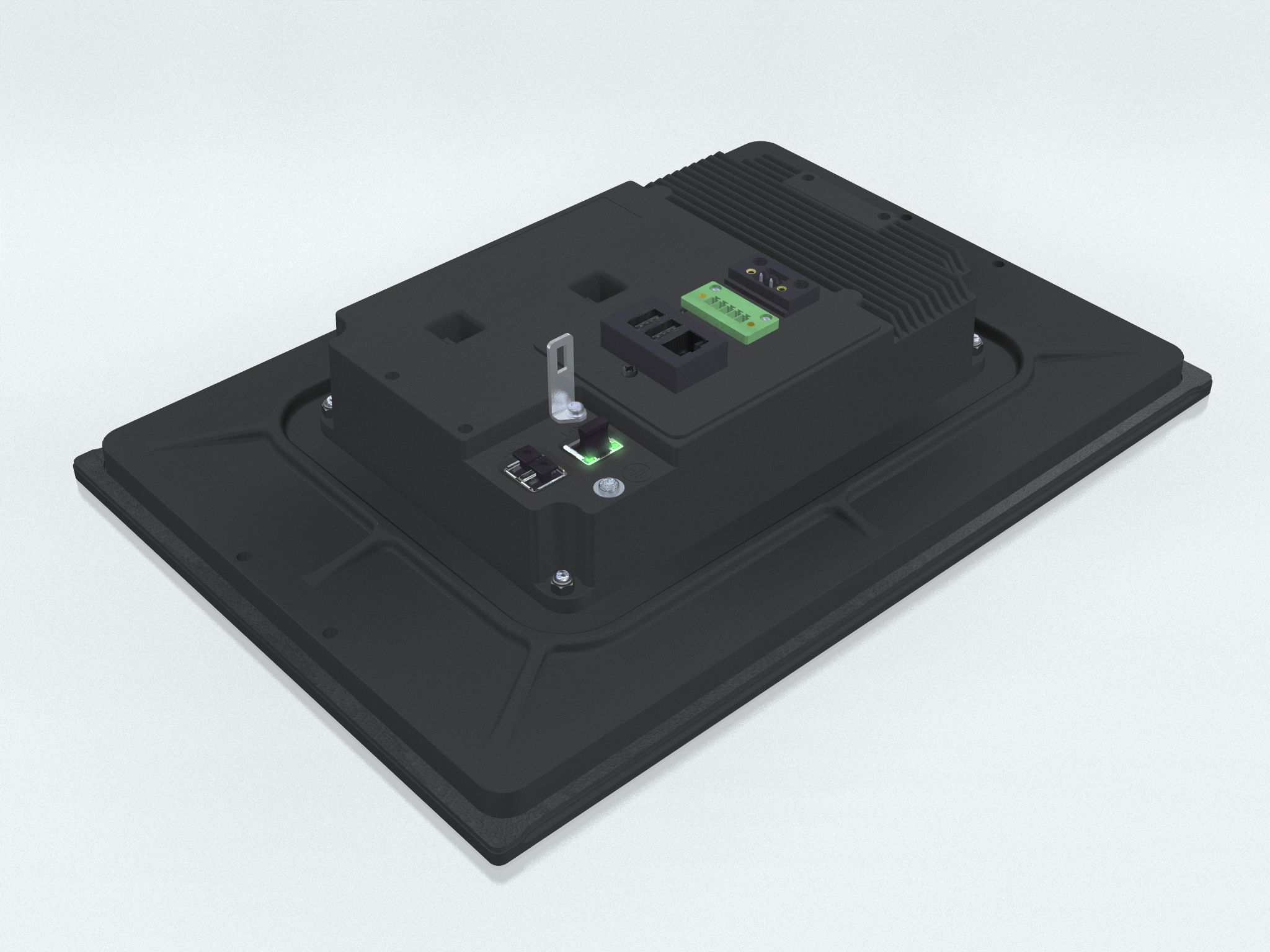 This model is delivered with a factory mounted Projected Capacitive Touch Screen (Multitouch, USB interface) as standard. Brightness is dimmable from 0-100%.