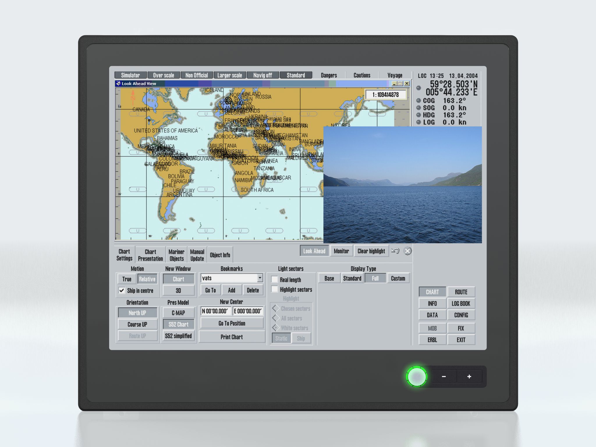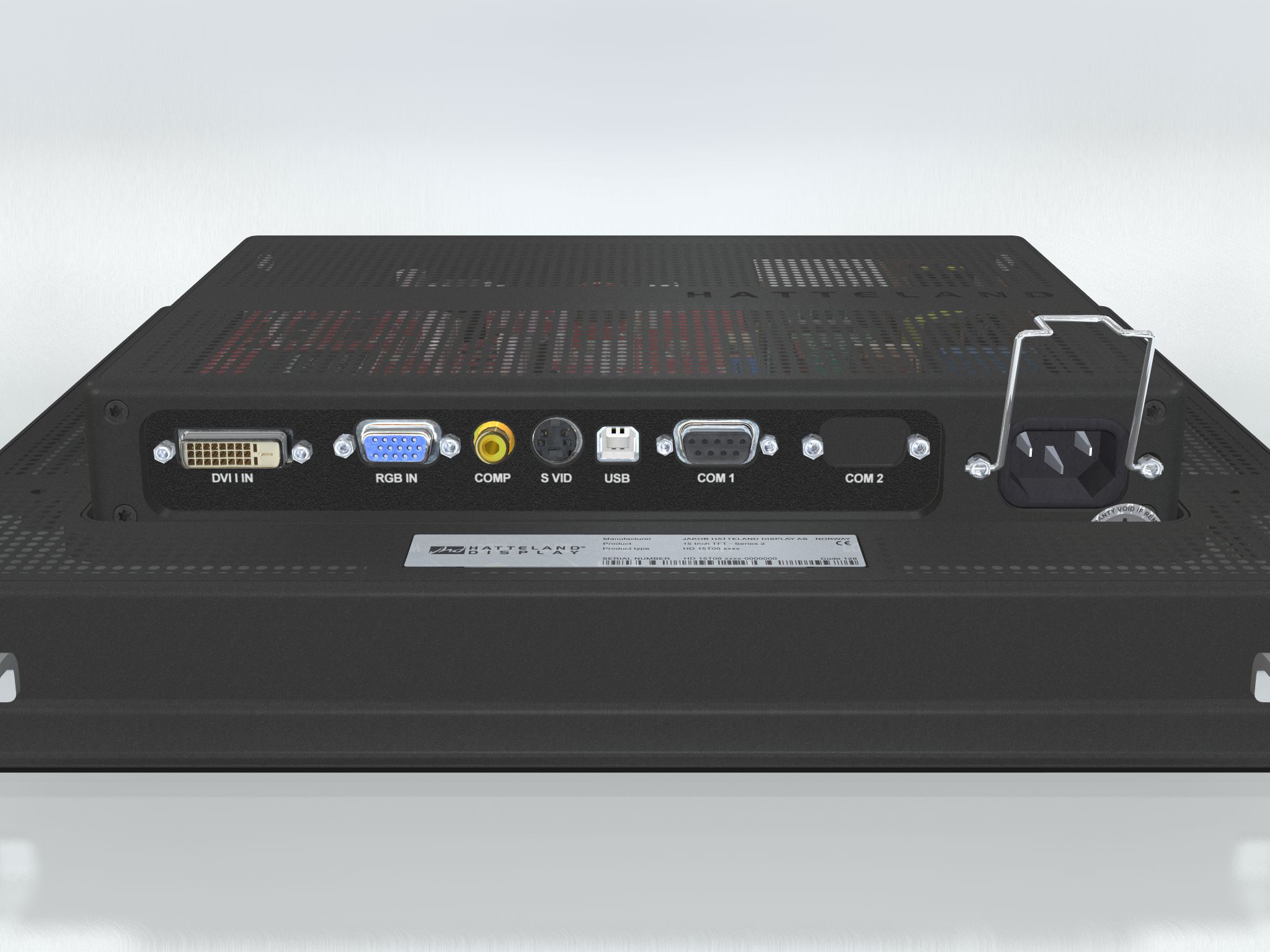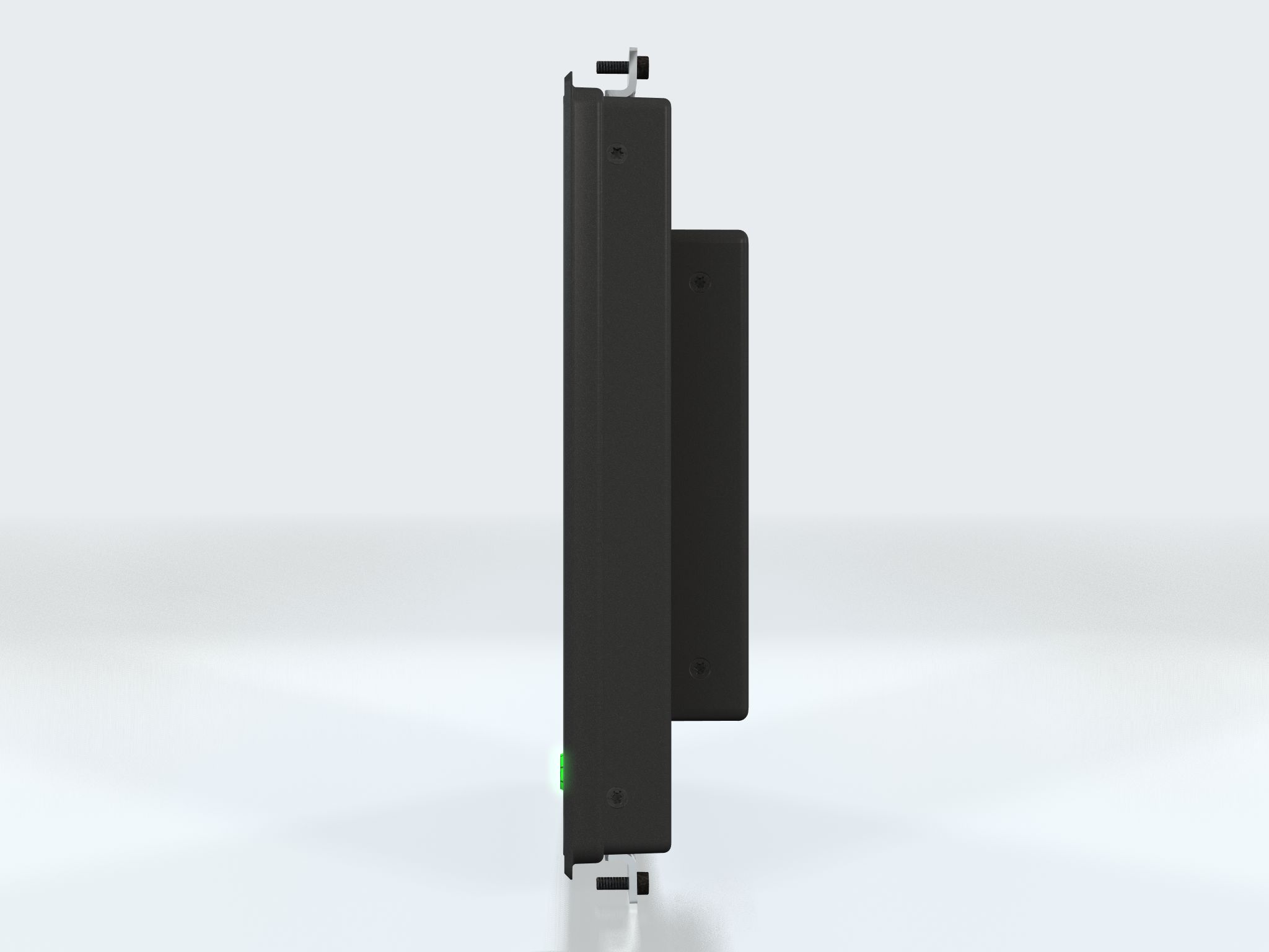 Shipped with factory mounted flange as standard (3mm in width). IP22 or IP66 rated (from front) depending on the user control. Console mounting achieved with minimal frame. Model secured from behind. No visible screws in front. Optical bonding technology is standard which mitigates screen misting and eliminates reflections. The MMC backpack has two silent processor fans, but no other moving parts inside which will prolong lifetime and reduce service costs. Brightness is adjustable from 0 to 100%. Either AC or DC power input.