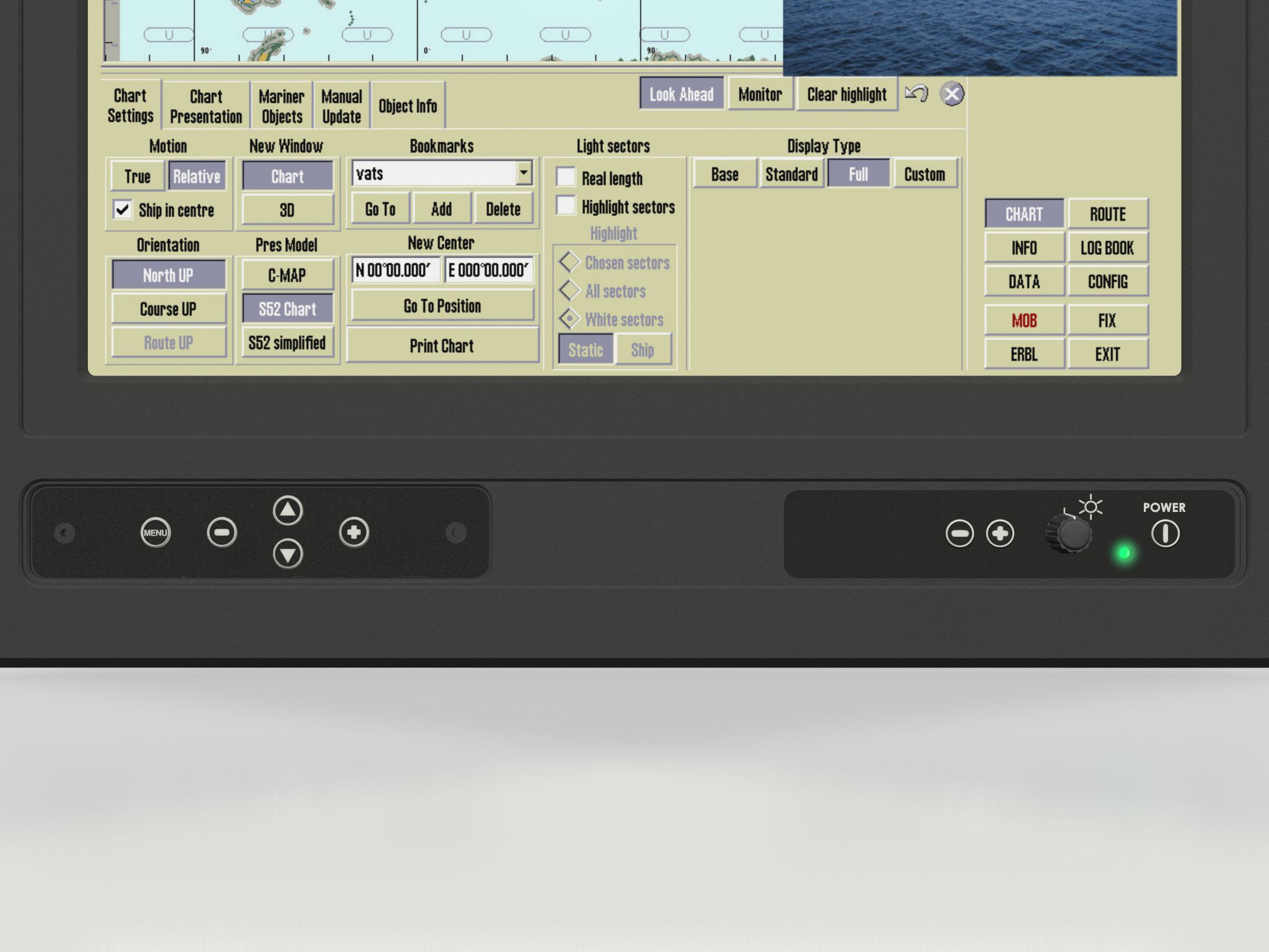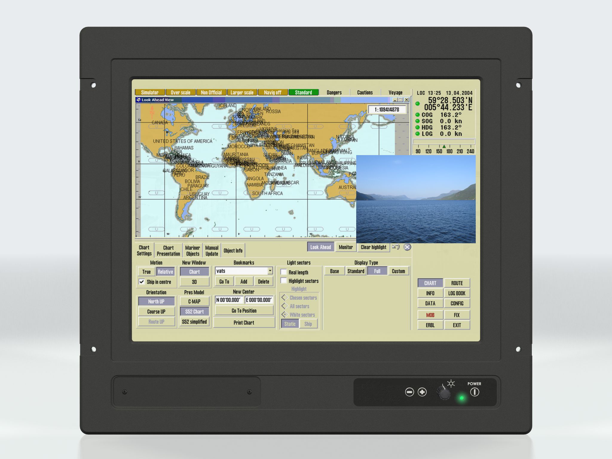 PIP (Picture In Picture), Video Input (Composite/SVHS) inputs, Hotkey Functionality, Dimmable 0-100%, ECDIS Compliant |