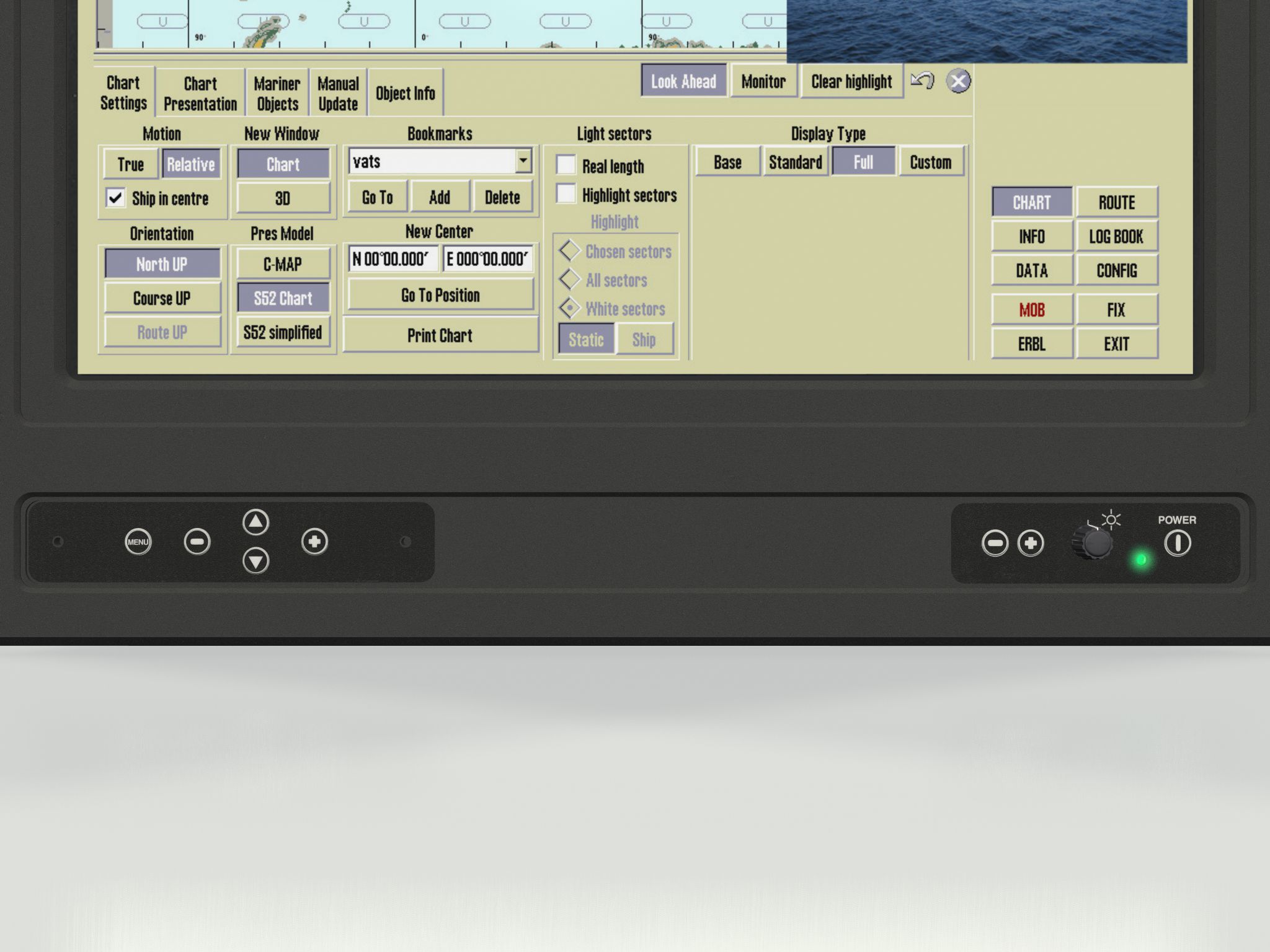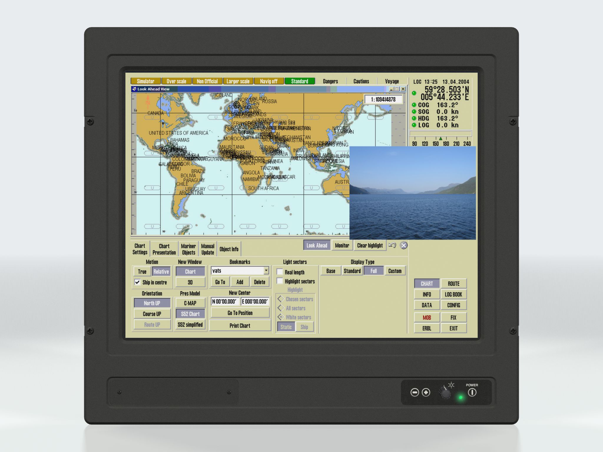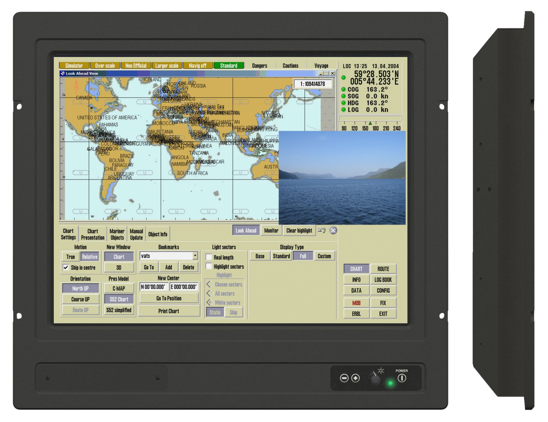 PIP (Picture In Picture), Video Input (Composite/SVHS) inputs, Hotkey Functionality, Dimmable 0-100%, ECDIS Compliant |