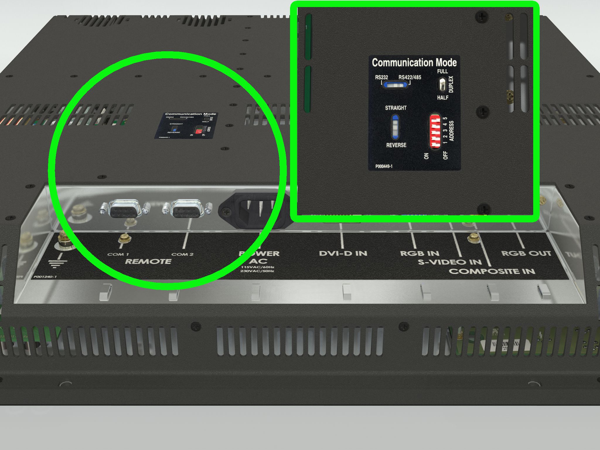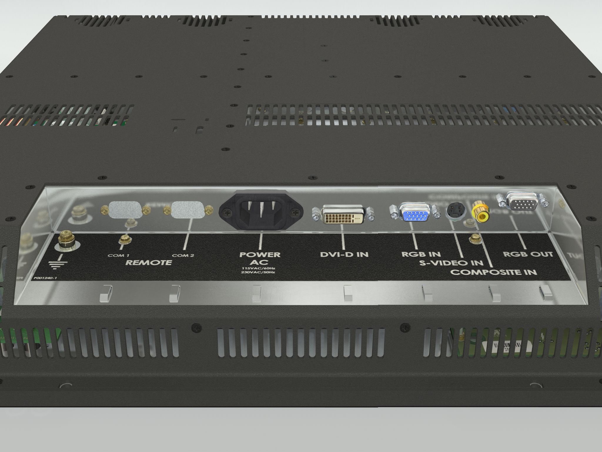 • DVI-D (PC) signal: DVI-D Input 24pin Connector • RGB (PC) signal: 15pin mini D-SUB (female - Input) • Composite Video: RCA Phono plug • S-Video signal: S-Video (SVHS) plug • If AC Power signal: Std IEC Inlet Model JH 23T02 MMD-A1 • If DC Power signal: Screw terminal Model JH 23T02 MMD-A2 • If Touchscreen: 1 x D-SUB 9P Connector (female) • If Remote Control: 2 x D-SUB 9P Connectors (female) |