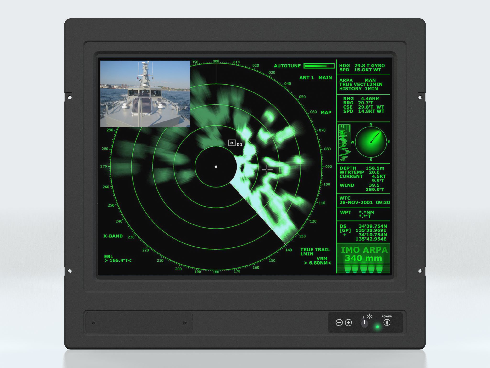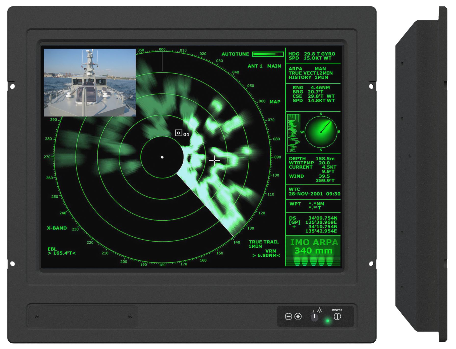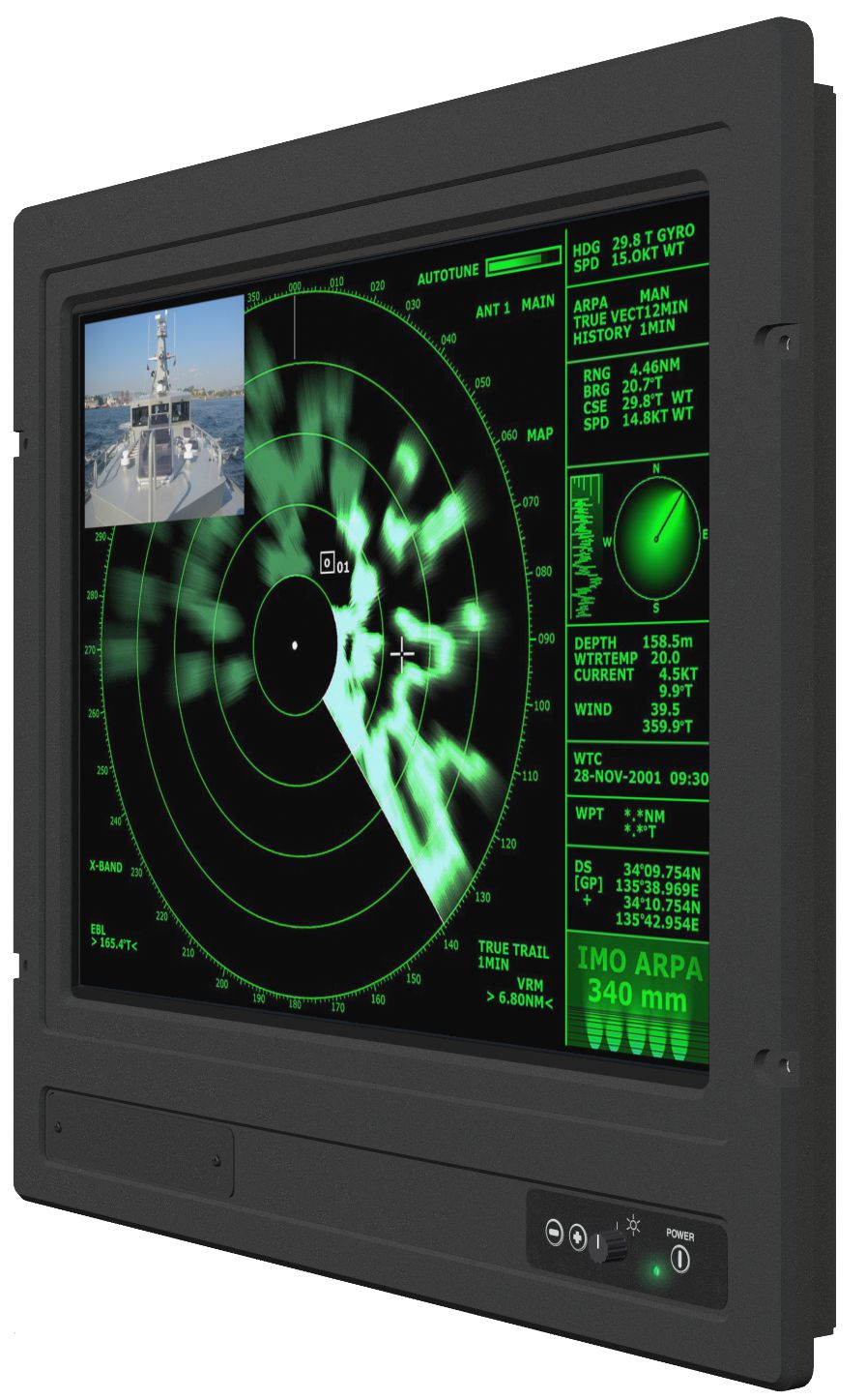 Picture in Picture (PIP), Fully adjustable backlight (0-100%), Serial Communication (SCOM) Interface, Suitable for navigation and automation, ECDIS Compliant |