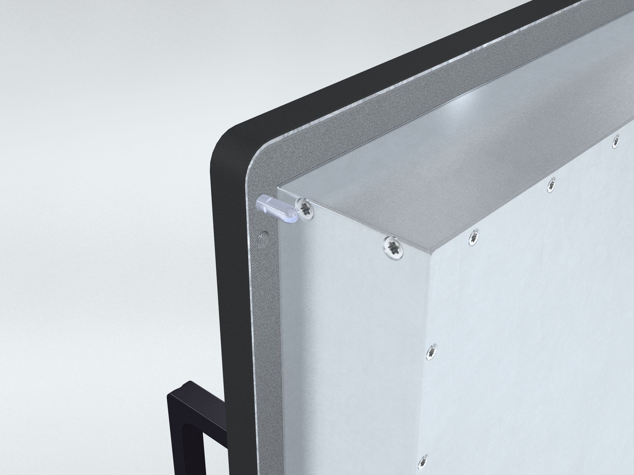 EMI/EMC gasket for console mount. Silicone sponge (AMS-3195) with vertical aluminium wires. 3M 950 pressure sensitive adhesive on one side. Fits 20 inch.