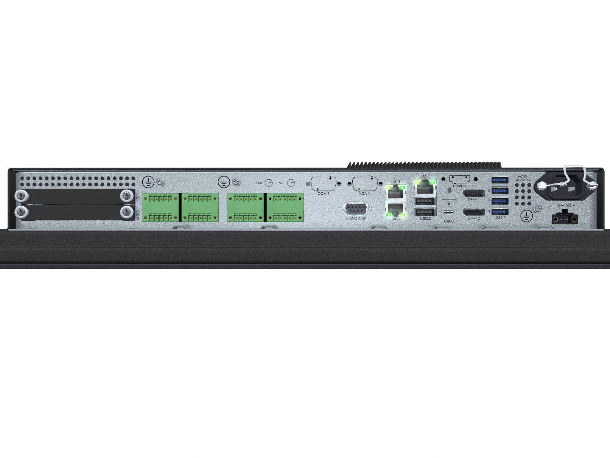 • USB-C: 1 x USB-C DP ALT mode, PD/DP (60W) • DP++ 1.2 OUT: 2 x DisplayPort Female (Dual-Mode DP++) • USB2.0 (<5m): 4 x USB Type A (4-pin) • USB3.0 (<3m): 2 x USB Type A (9-pin) • Ethernet GBLan: 3 x RJ-45 • Amp Audio: 1 x DB9 Female 2W@70°C • If SSD Trays: 2 x 2.5" Sized Tray/Bay (Factory option) • AC Power IN: 1 x Std IEC inlet • if DC Power IN: 1 x 2-pin Terminal Block 5.08 |
