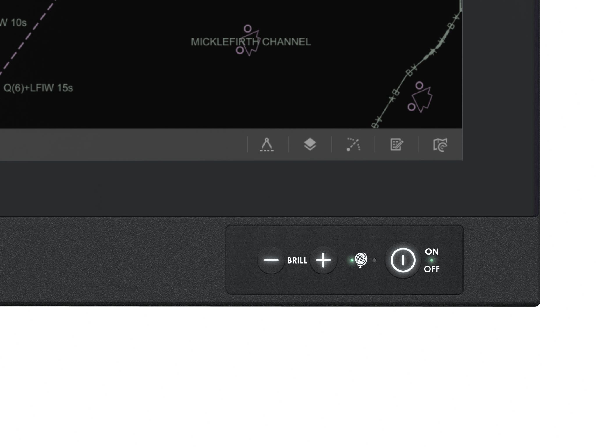 On Front Bezel (IP66), Tactile buttons: Power On/Off, Brightness Control (-/+), Power LED, ECDIS LED, Buzzer (75-85dB), Light Sensor |
