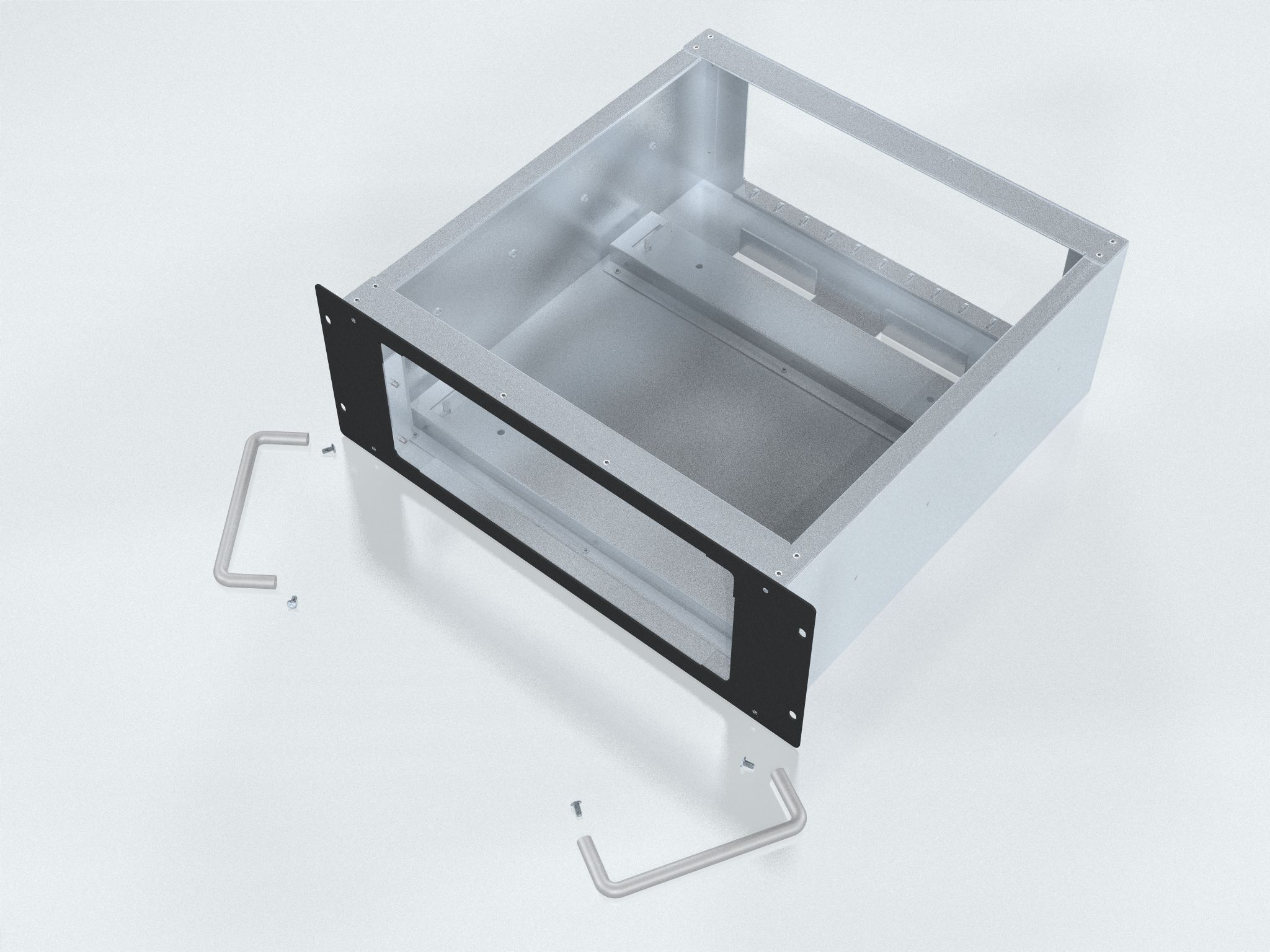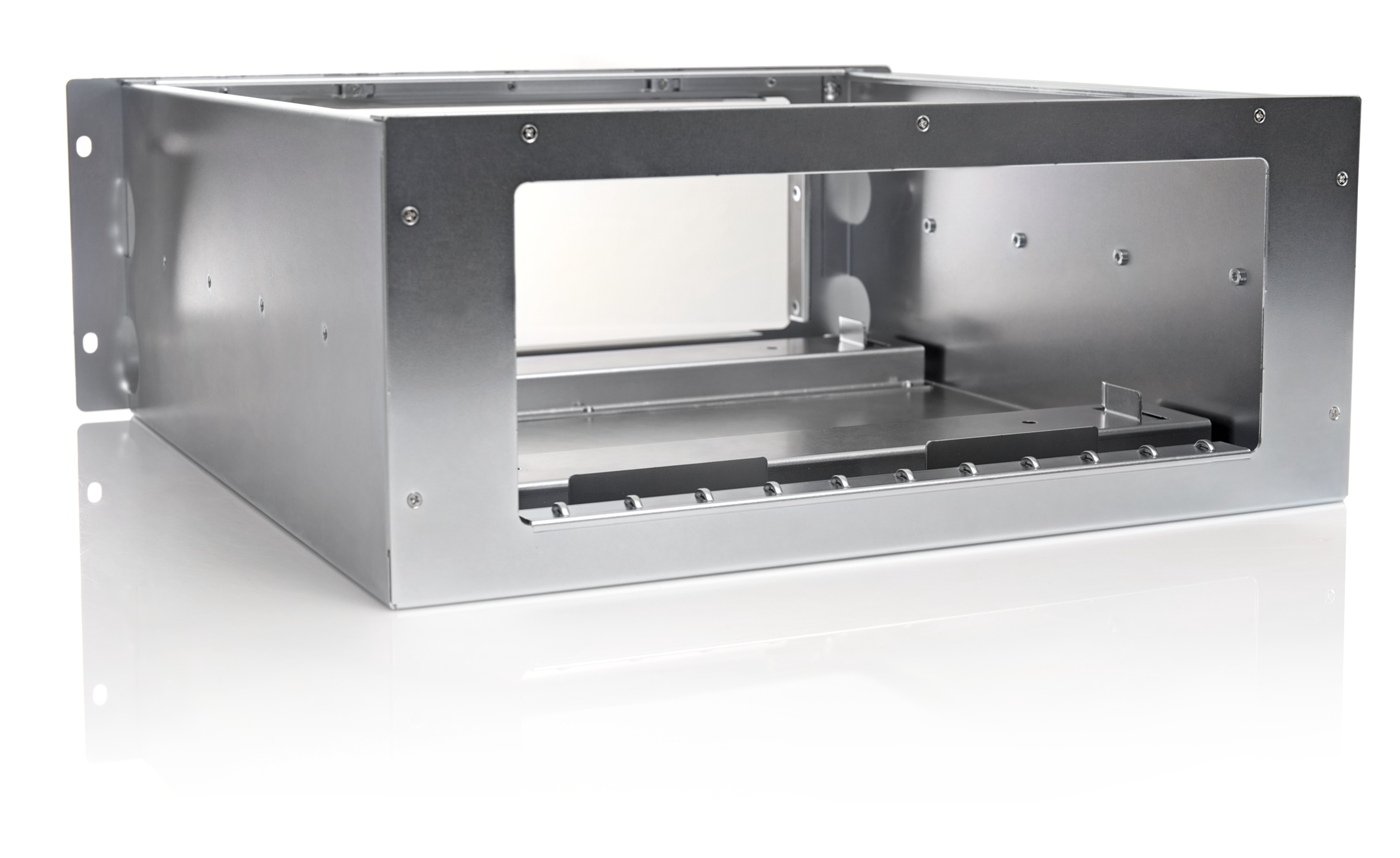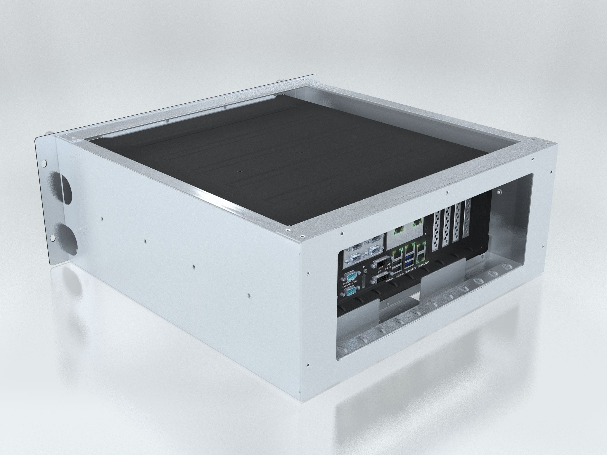 Mounting Adapter for HT C01/HT C02/HTC03 computer units to fit inside 19 inch Rack 4U size. Can be combined with Rail Kits. Front handles can be removed.